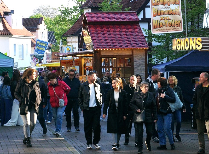 Auch für das leibliche Wohl war mit unzähligen kulinarischen Angeboten bestens gesorgt: Langos, Bratnudeln, Steaks, Zuckerwatte, Crepes, gebrannte Mandeln, Eis und andere Kirmesklassikern ließen keinen Hunger aufkommen. Auf dem Königin-Mathilde-Platz lud die beliebte Weinlaube zum Schoppen ein, im evangelischen Gemeindehaus fand das traditionelle Kuchenbuffet am Sonntag viele begeisterte Abnehmer:innen.